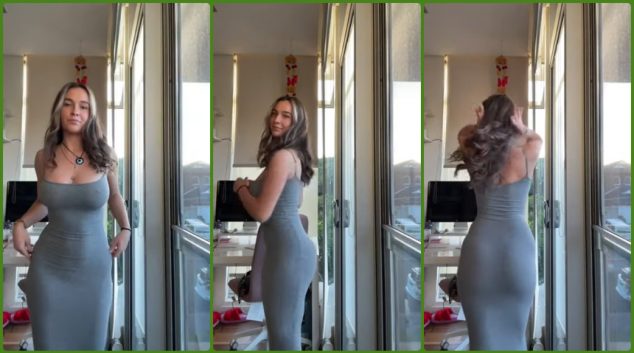 Девојката сака да ѝ дадеме мислење како изгледа фустанот на неа