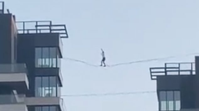 Одење по јаже во циркус е едно, а на врвот на зграда е друго