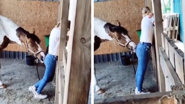 На коњот многу му се допадна плавушата, а на неа тоа не ѝ пречи