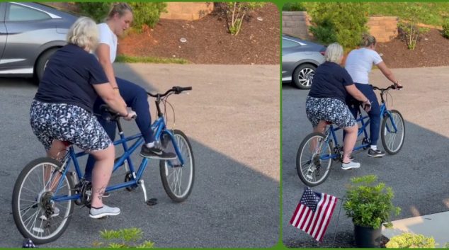 Две дебели госпоѓи на еден велосипед и тоа на угорница