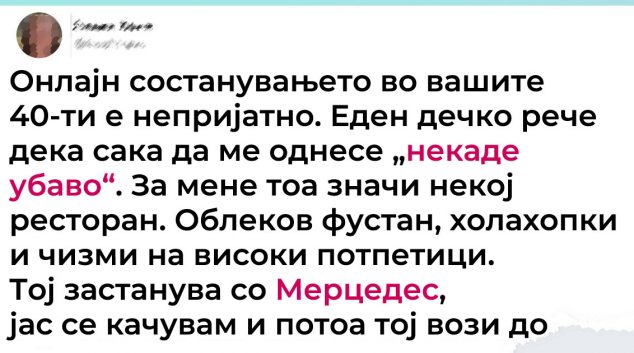 Запознавањето може да биде ролеркостер од емоции, понекогаш, приказните што произлегуваат од тоа треба да бидат филмски заплети. Најдовме 10 незаборавни приказни за запознавање кои се некаде помеѓу страшно и урнебесно. Во секој случај, овие луѓе докажуваат дека светот на состаноци е како времето – секогаш се менува кога најмалку го очекуваме. 1. Требаше да …