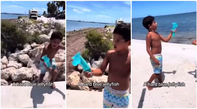 „Мамо видии уловив тврда плава медуза!“ – На мамичка изгледа ѝ испаднало нешто во водата, но како да му објасни сега на радосниот син?