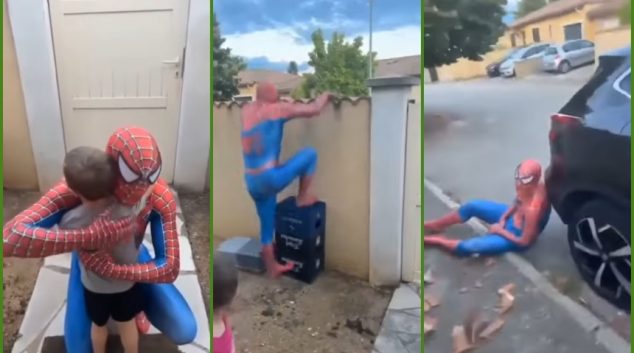 Спајдемер му дојде на роденден и го изненади детето со своите „вештини“, а таткото не може да се изнасмее