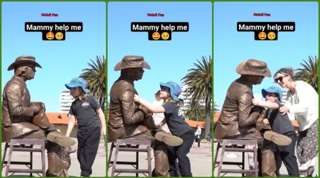 „Мамооо помош, ја турнав статуата не можам да ја вратам назад!“