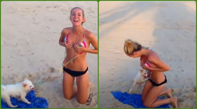 Кученцето сакаше да си поигра со дадичката, ама неа ја фати срам