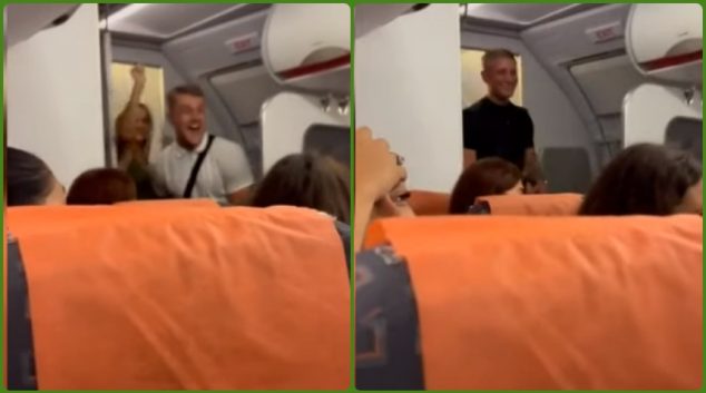 Дечкото и девојката излегоа од тоалетот на авионот како вистински победници, откако си „кажаа“ по една рунда набрзина