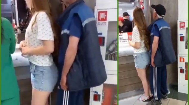 Дедото само си чека ред во сендвичарата, а не знае дека го снимаат