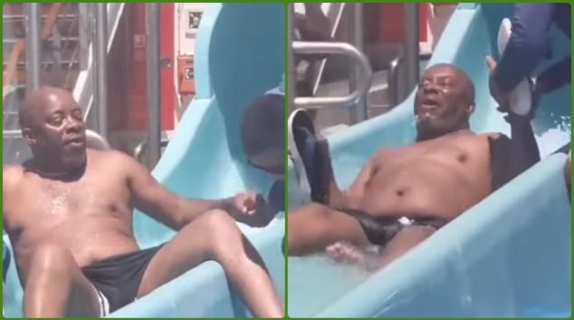 Чичко Лари прв пат се пушти на лизгалка… очигледно и последен