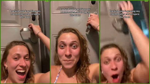 Девојката се заклучила и бара помош од мачката на цимерката да ја отклучи