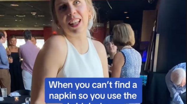 Урнебесен момент кога дете не можело да најде салфетка за време на свадбената забава, па решило наместо тоа да го искористи фустанот на невестата за да си го избрише лицето. Снимката од забавната сцена беше споделена на „TikTok“ и го прикажува симпатичното двегодишно дете како зграпчува парче од белата тоалета на невестата, …