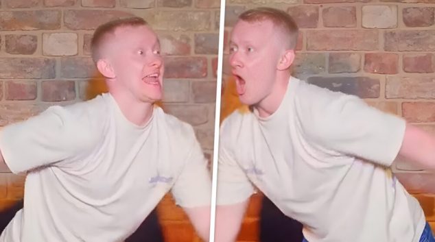 Стенд ап комичар имитира фудбалер после постигнување на гол, но тоа го прави во забавена снимка?! Браво!