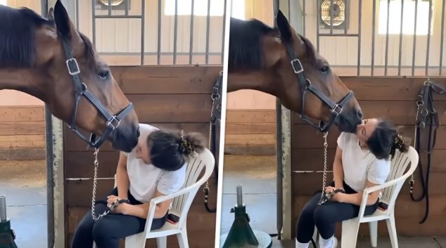 Девојката најмногу од сè на светот си го сака својот коњ, но малку повеќе претерала со љубовта