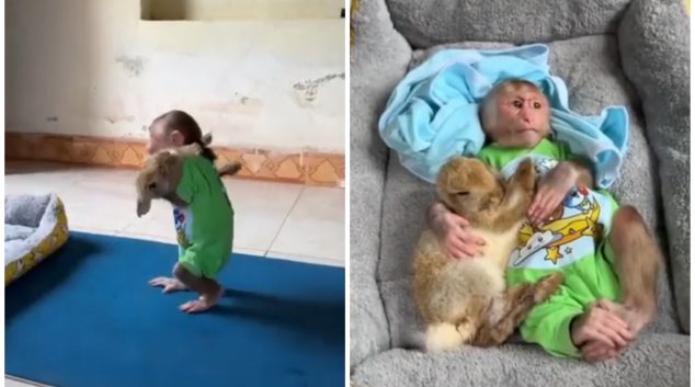 Позитив на денот: Пријателството меѓу ова зајче и мајмунче ќе ви го затопли срцето