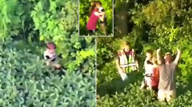 Тригодишно момче повторно се соединува со неговото семејство, откако полициска патрола на автопатот во државата Охајо, со хеликоптер успешно ги водела до него. На видеото, снимено со спасувачки хеликоптер, пилотот го забележал детето кое зачудено седело на огромно поле со грав и полека се движело низ посевите. „Верувам дека го пронајдов. Тој е во …
