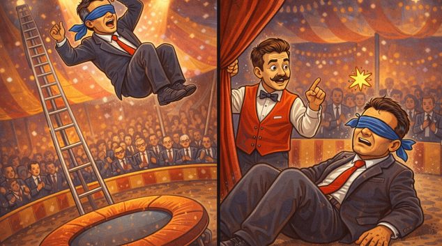 Дошла чесна влада во Македонија и на Зоран Заев му зеле сè. Останал без ништо и се вработил во циркус. Таму станал ѕвезда со една единствена точка. Поминале многу години, Зоки веќе остарел, 75 години, па решил да ја изведе точката за еден последен пат. Овој пат решил да ја изведе точката со врзани очи. …
