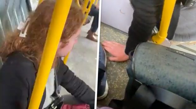 Маж облечен како жена подмолно се обидува да пипка друг маж во метрото во Даблин