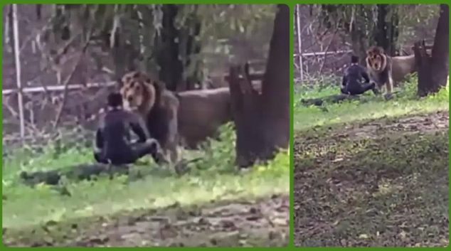 Пијаниот отиде кај лавот за да си направи отворен муабет лице в лице