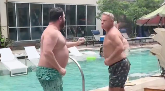 Тепачка со голи раце на двајца „атлети“ од повисока класа. Наградата е лежалка крај базенот!