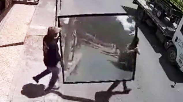 Како да пренесеш огледало преку патот, без да го запираш сообраќајот?