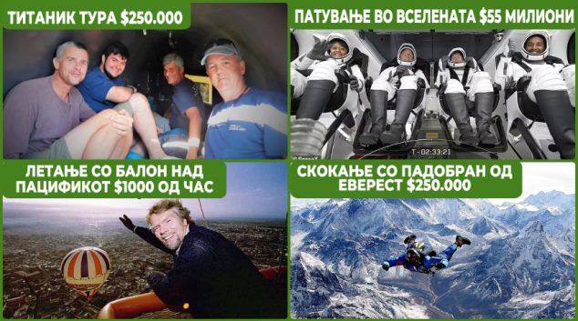 Потопната трагедија на Титаник го осветли растечкиот тренд меѓу најбогатите луѓе во светот – екстремниот туризам. Кога се појавија фотографии од клаустрофобичната внатрешност на потопницата „Титан“ која нема столици и Ziploc торби за тоалети, светот беше шокиран кога дозна дека неговите пет членови на екипажот платиле 250.000 долари од човек. Наоѓањето на остатоци од подморницата …