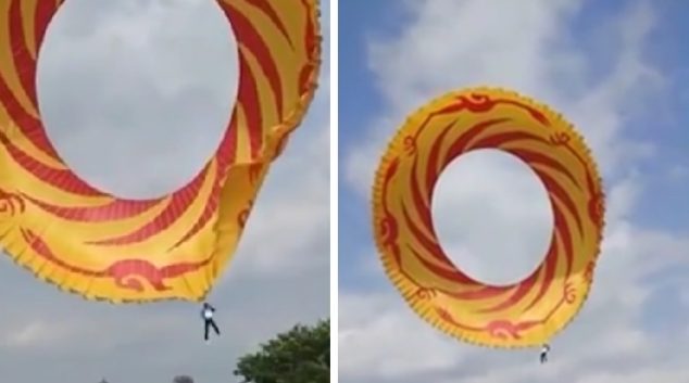 Човек беше однесен од џиновски змеј на Фестивалот на змејови во Кина