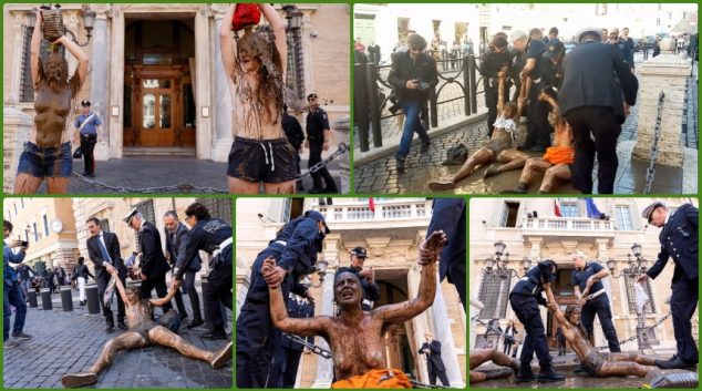 Климатските активисти одржаа полугол протест пред Сенатот во Рим