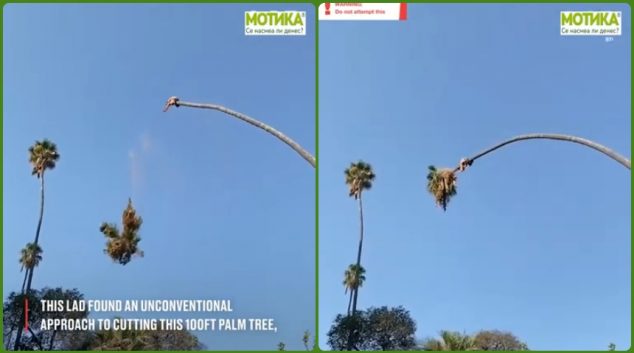 Еден неконвенционален начин на сечење палма од 30 метри. И вака може ако не планирате да останете живи!