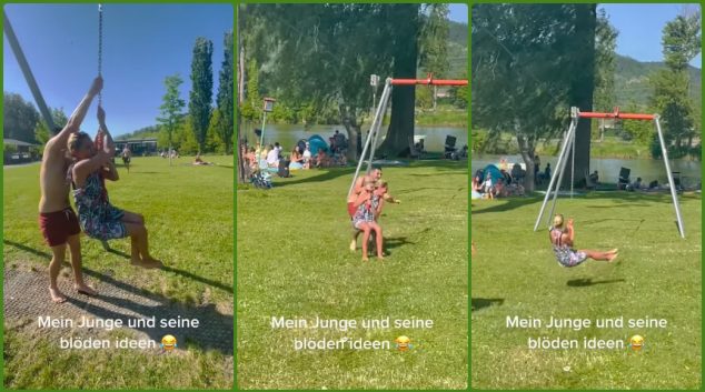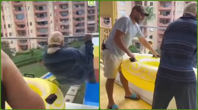 Дедото веќе нема што да изгуби па се одлучи да станува акробат во Аква парк