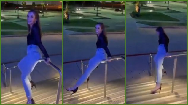 Девојката да сакаше немаше да може вака успешно да го фати мртвиот агол на камионот