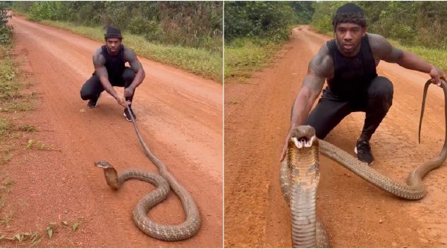 Тарзан си игра со кралска кобра – најголемата отровна змија во светот