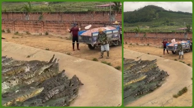 Професија на денот: Главен и одговорен за хранењето во фарма за крокодили