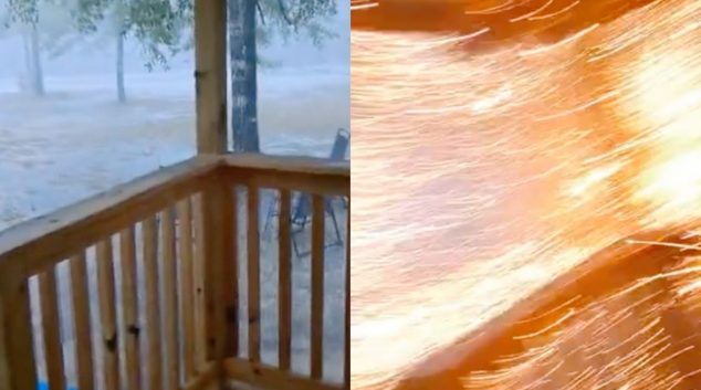Жената случајно го сними громот кој ѝ го уништи тремот на куќата