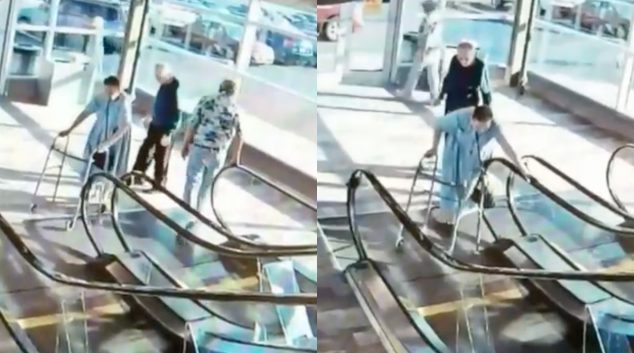 Старата бабичка сакаше да користи ескалатор, но ниту со помошникот мисијата не беше успешна