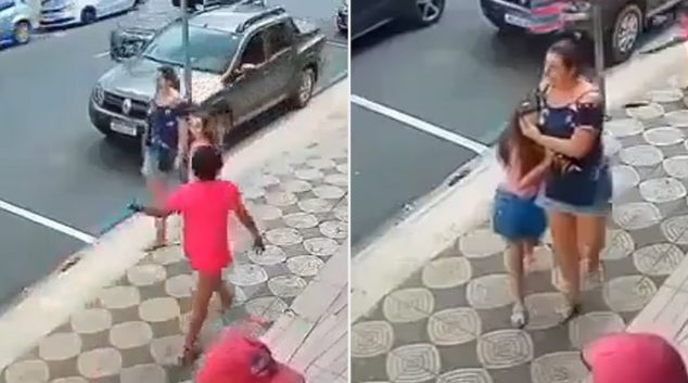 На снимката од надзорните камери се гледа како мајка оди со својата ќерка на тротоар во Бразил додека жената им се приближува од спротивната насока. Жената ненадејно ја пружа раката и го удира девојчето во лице додека се разминуваат. Мајката се подготвува да се одмазди кога нејзината исплашена ќерка ја повлекува назад токму кога жената …