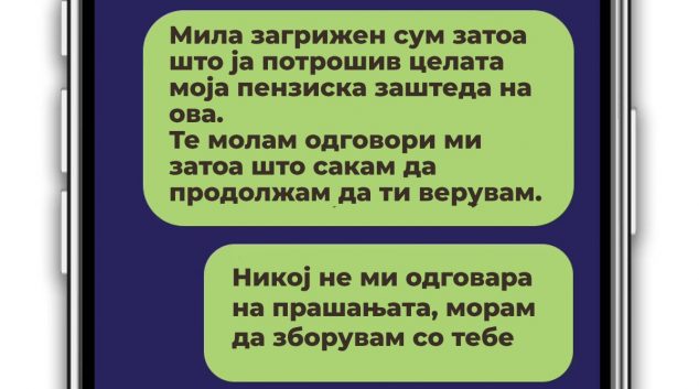 Еден 75-годишен маж ги сподели потресните СМС пораки кои го чинеле целата негова животна заштеда од 715.000 долари во болната повеќемесечна измама. Човекот, кој не сакаше да биде именуван, изјави како детализираниот трик го убедил дека една помлада жена се заљубила во него и имала потреба од негова помош. Измамата започнала во мај минатата година …