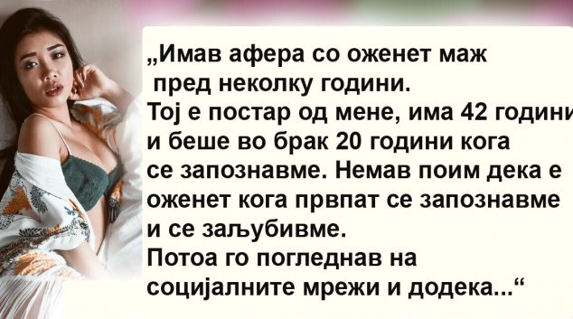 Една жена (32), која била љубовница на оженет маж, напиша за својата ситуација на онлајн форумите. Таа даде признание кое очигледно беше болно за неа. Жената сакаше да ги праша луѓето за мислење за нејзината многу комплицирана ситуација. Нејзината приказна е полна со дилеми кои чувствува дека не може сама да ги реши, па и …