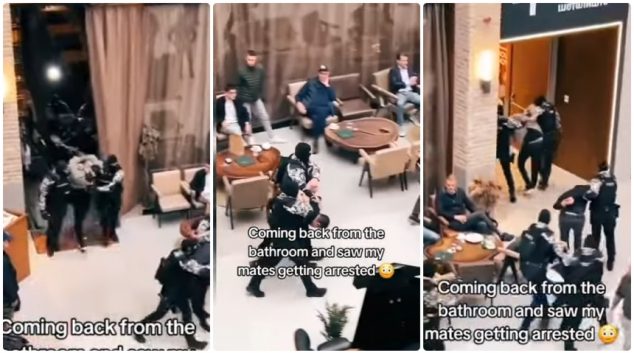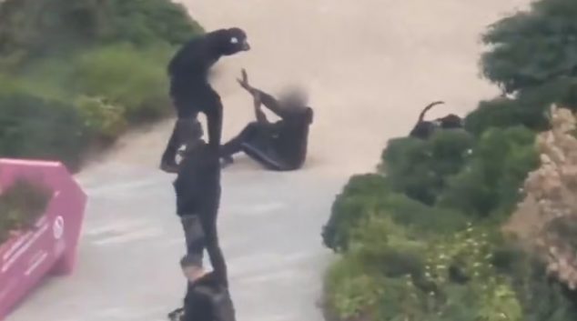 Ептен го утнал тајмингот: Драматичен момент кога „херојска“ група полицајци кои уживаат на пијачка после работа стапуваат во акција да спречат напад со нож, а немаат ниту заштитна опрема
