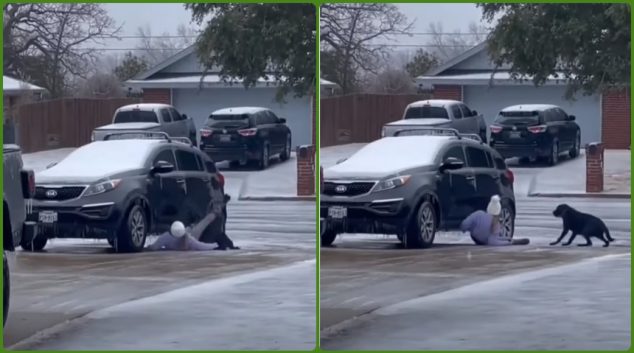 Кучето сакаше да си поиграат малку, ама ја реши газдарицата, па сега кој ќе го шета на мразов?