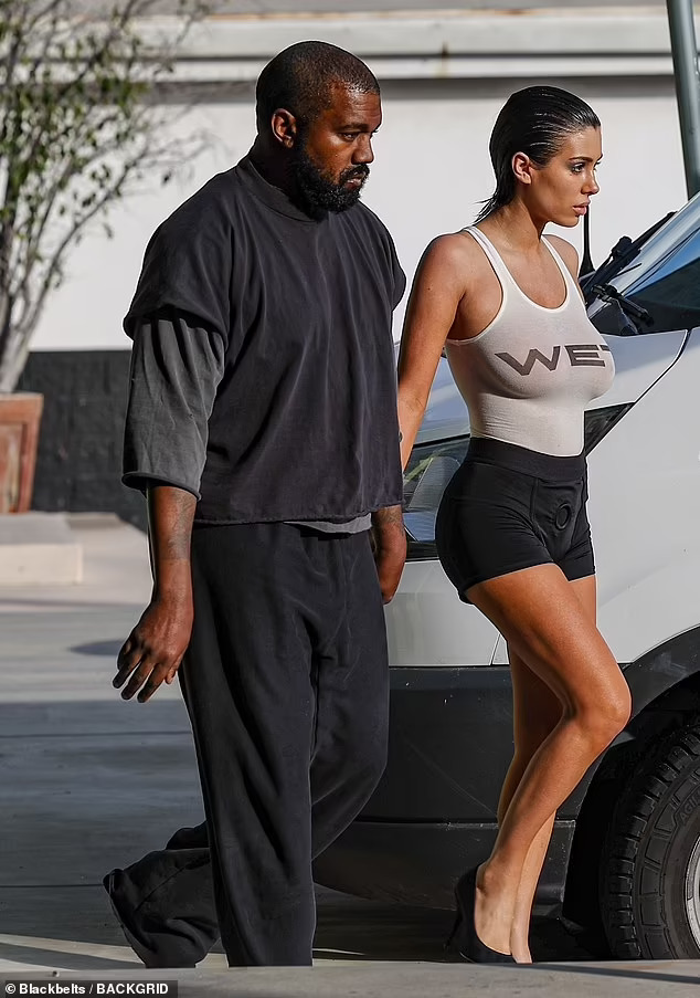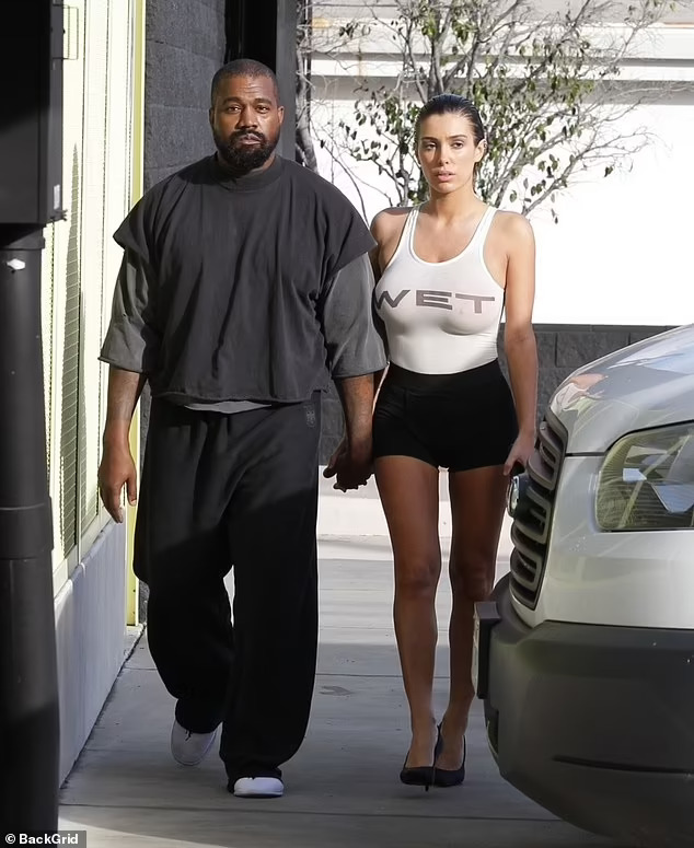 Вест (46), која неодамна си стави титаниумски заби од 850.000 долари, се држеше за рака со Ценсори (29), додека таа одеше без градник во кратка маичка со натпис „МОКРО“.