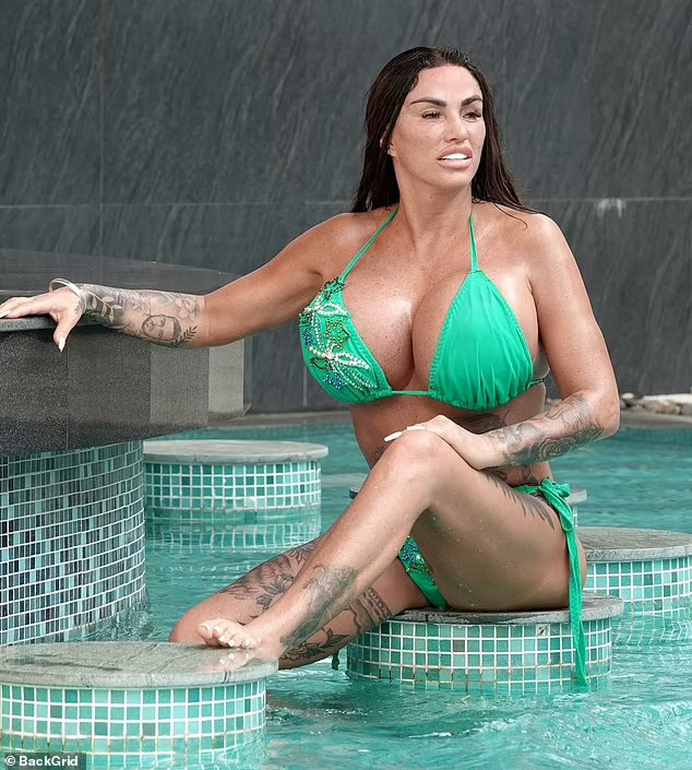 Поранешната 44-годишна манекенка која ја продолжи својата кариера на OnlyFans, Кејти Прајс, неодамна го направи своето 16-то зголемување на градите во обид да ги има „најголемите во Британија“. Па сега таа облече оскудни зелени бикини за сите да го видиме нејзиното „ремек дело“.