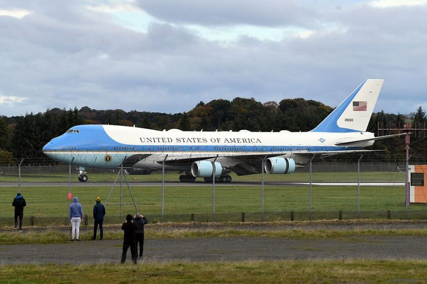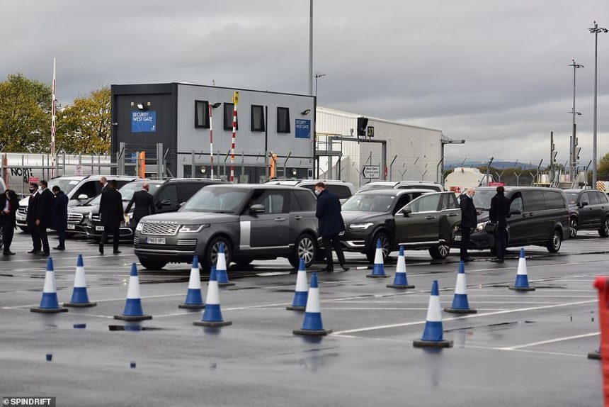 Борис Џонсон долета од Рим со неговиот „Ербас А321“, врежан со знамето на Унијата, но остана заглавен околу Глазгов повеќе од 20 минути поради бројот на авиони што пристигнуваа.