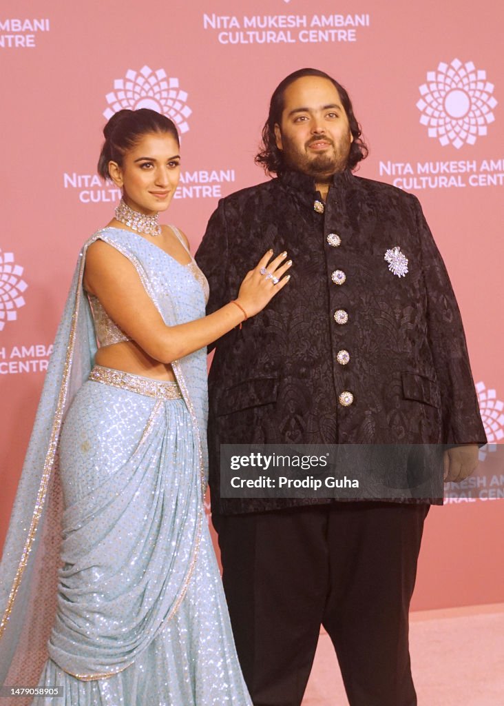 MUMBAI, INDIA – APRIL 01 : Radhika Merchant and Anant Ambani attend the launch of Nita Mukesh Ambani Cultural Centre (NMACC) on April 01, 2023 in Mumbai, India (Photo by Prodip Guha/Getty Images)