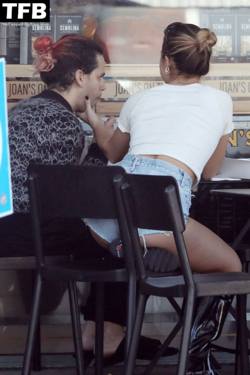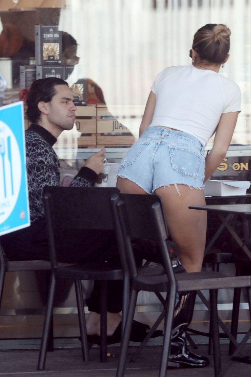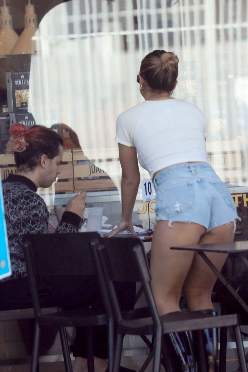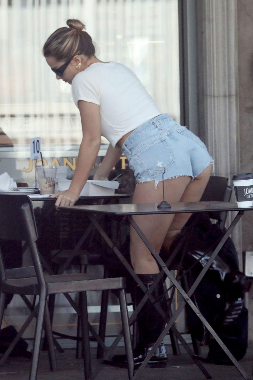 21-годишната американска пејачка, личност на социјалните мрежи, танчерка и актерка Адисон Реј носи кратки шорцеви и гумени чизми на улица во Западен Холивуд.