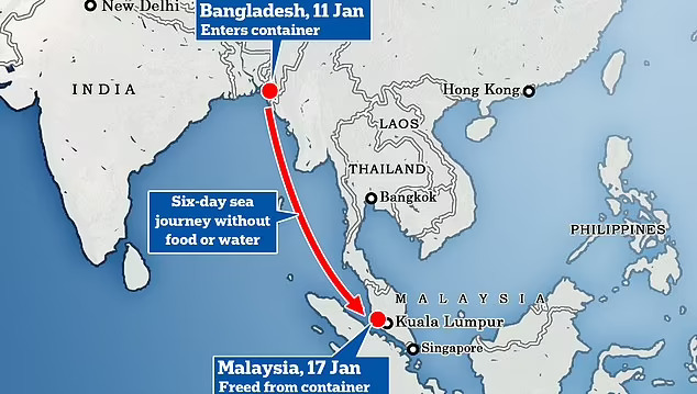 Младиот човек се нашол заглавен во контејнерот за време на играње криенка со пријателите во Читагонг, Бангладеш, на 11 јануари. Откако заспал, тој бил затворен во контејнерот и следниот ден со контејнерскиот брод „Интегра“ отпловил преку Индискиот Океан.