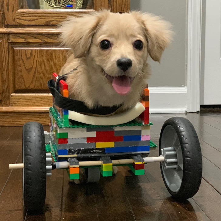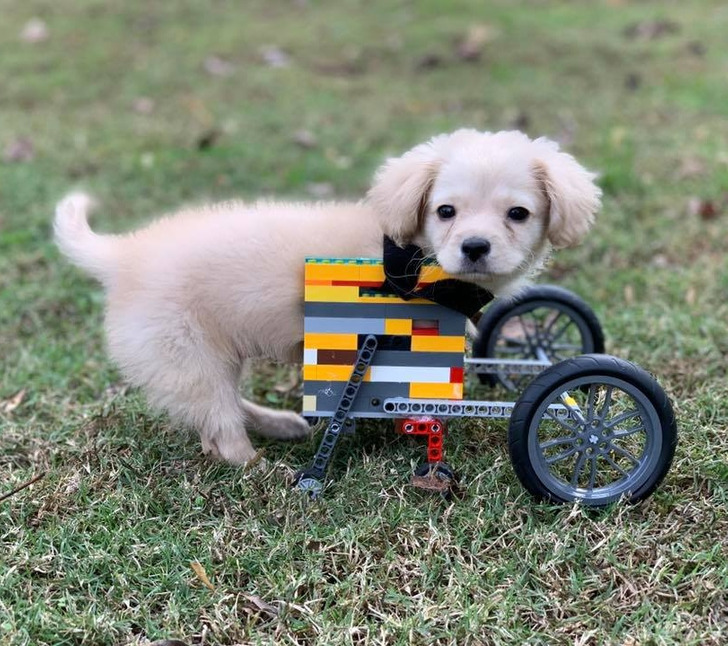 12-годишно момче направи LEGO инвалидска количка за ова куче родено без предни нозе, а изразот на кучето кажува сè