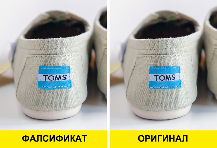 Следно, можете да го проверите задниот дел на еспадрилата за да го погледнете логото. Буквите на оригиналниот бренд се совршено избалансирани и квадратни. Сепак, буквите на лажниот бренд се зашилени и неурамнотежени (забележете ја непарната форма на буквата „О“). Исто така, шевовите околу етикетата изгледаат подебели на лажните.