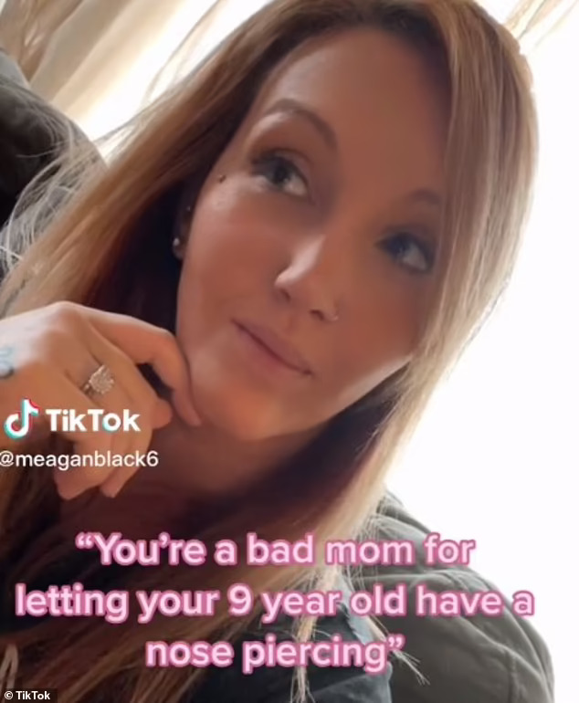Меган Блек (28) од Илиноис објави видео на кое се гледа како нејзината ќерка Бела (9) носи златен пирс на носот – поради што многу корисници на социјалните мрежи ја означуваат 28-годишната девојка како „лоша мајка“.