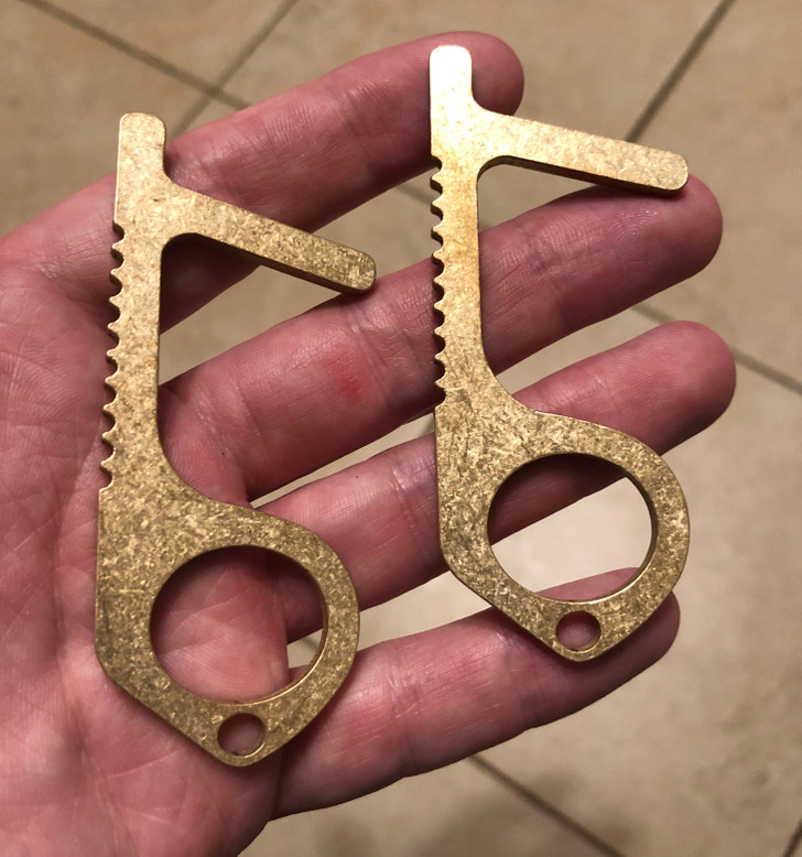 Одговор: Тие одат на вашиот привезок за клучеви, а се користат да ги туркате вратите или да притискате копчиња, за да не мора да допирате со прсти.
