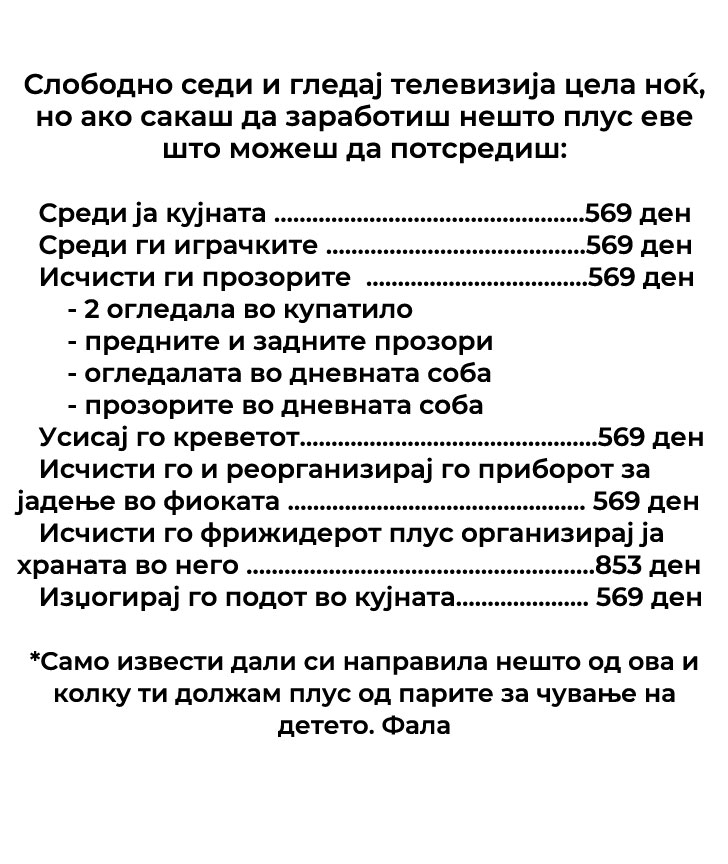 Мајка го откри списокот на обврски што го оставила за нејзината дадилка. Дали е ова во ред?