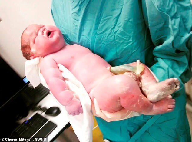 Шерал Мичел (31) го шокираше персоналот во болницата Џон Редклиф во Оксфорд откако, со помош на две медицински сестри, роди дете тешко 6,7kg.